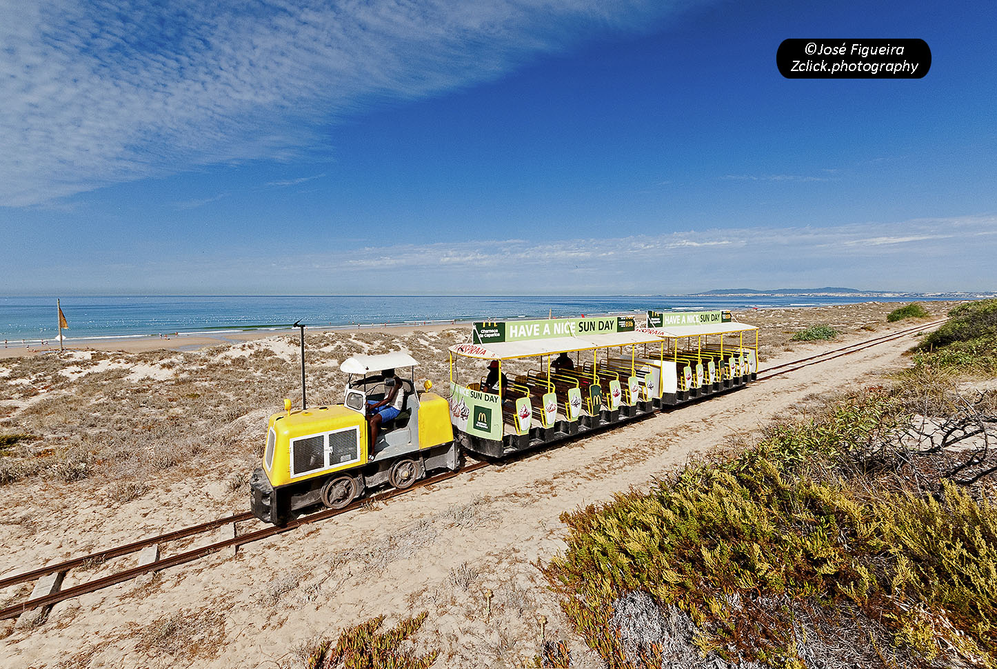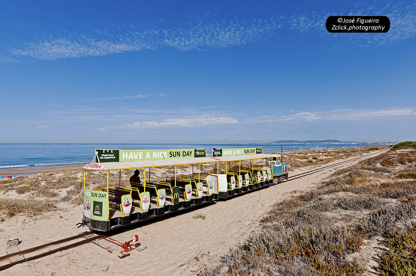 The Transpraia was, for many years, a picturesque tourist train that connected Costa da Caparica to Fonte da Telha. On a pleasant journey of around 9 km, we were able to enjoy and delight in the magnificent beaches of the Atlantic Front of Almada.